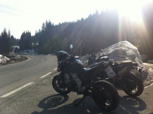 Eine sehr sportliche BWM mit einem feschen Boxer-Motor – hat Kraft, ist recht brav und frisst brav die Kurven. Integriert hatte sie einen Schalt-Assistenten, allerdings in beide Richtungen (rauf und runter). Recht nett, aber das Ding tut nur super, wenn man richtig auf Zug ist, wenn man den Gas-Hahn nicht so richtig offen hat, dann ruckelts ordentlich. Ansonsten, fährt sich die BMW nieder- wie auch hoch-tourig sehr fein. Ich glaub damit ist ganz angenehm zu reisen!