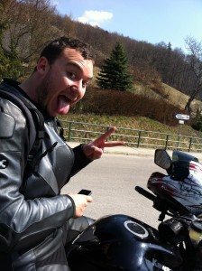 Krawutzi-Kraputzi. 180 ps auf ein paar Kilo – da geht was weiter. Ein kleines Kampfgerät – die KTM. Leider äußerst sensibel zu fahren, jede kleinste Handbewegung am Gas merkt ma sofort und wenn man das Gas mal ein wenig locker lässt, ruckelts auch ordentlich. Ansonsten brav in den Kurven, Power ist natürlich da, aber irgendwie nicht so richtig meines. Den Leerlauf einzulegen ging auch nicht. Alles ein wenig zickig…
