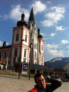 Nun endlich in Mariazell angekommen treffen wir auch den Alex, der in der Zwischenzeit von Wels Richtung Mariazell unterwegs war. Also schon wieder Zeit für eine Pause – wo geht das besser in Mariazell als direkt vor der Basilika.